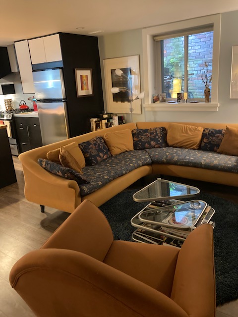 I spent part of one day in our Toronto apartment measuring every item of furniture, large and small, we intended to use in our Stratford house. We had agreed we were going to have a kitchen-dining room combo in the large rectangular room on the north side of the house, with a living room across the hall on the south side. We were going to create an angled wall for a corner fireplace and wall-mounted TV above it. Facing that would be our L-shaped sectional, Danish modern furniture I’d bought at the long-closed Jensen’s Furniture in London, Ontario. It needed reupholstering, but was a well-built, comfortable piece.